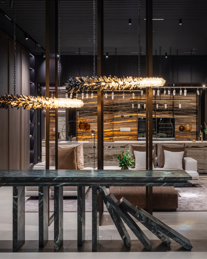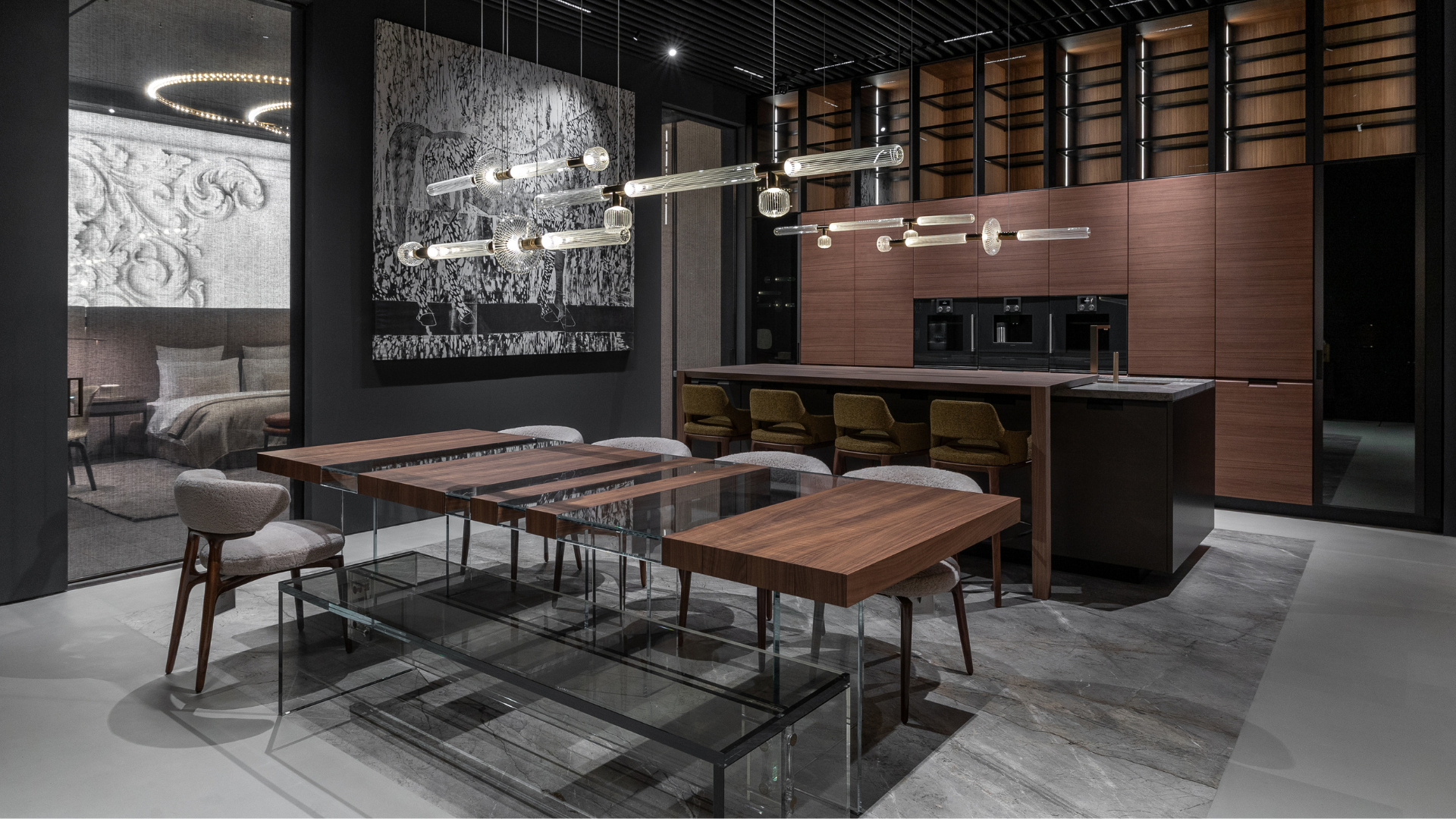 Spanning two floors and 20,000 square feet, the space flows like a private residence: a kitchen spilling into a dining room, a bedroom opening into a wardrobe. Every detail invites you to linger, to explore, to imagine life within it. Light, texture, and atmosphere guide the way, transforming the visit into a narrative in which every corner whispers possibility. Here, the showroom fades, replaced by a story of living and inspiration.