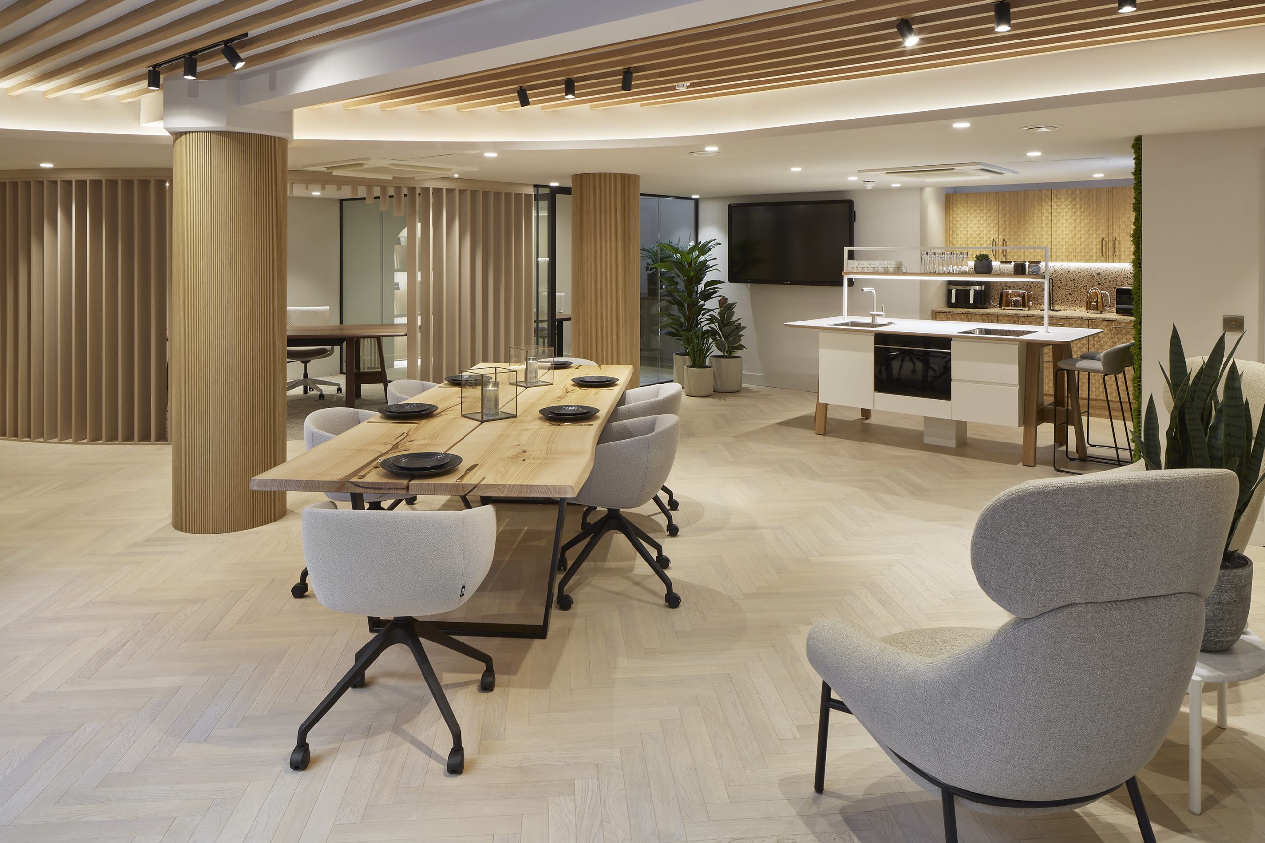 A Scandi-inspired colour palette has been paired with atmospheric lighting and soft curves throughout, resulting in a lower floor that feels much brighter but still unmistakably Havwoods.