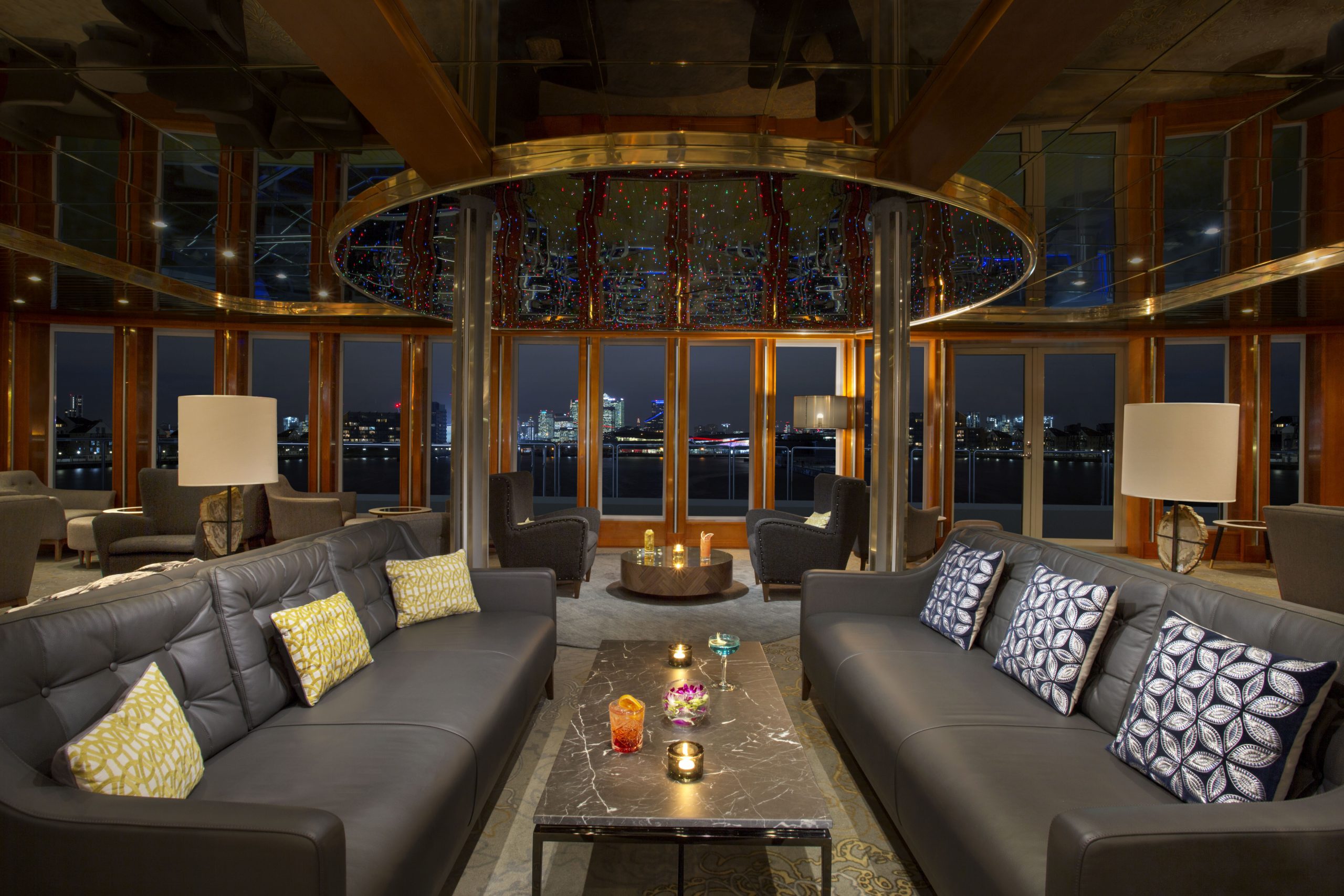 The hotel features exceptional guest facilities, including a restaurant, bar, and versatile event spaces spanning three floors. Floor-to-ceiling windows and outdoor terraces provide panoramic views across the dock toward the Siemens Crystal, Emirates Air Line, The O2 Arena, and Canary Wharf.