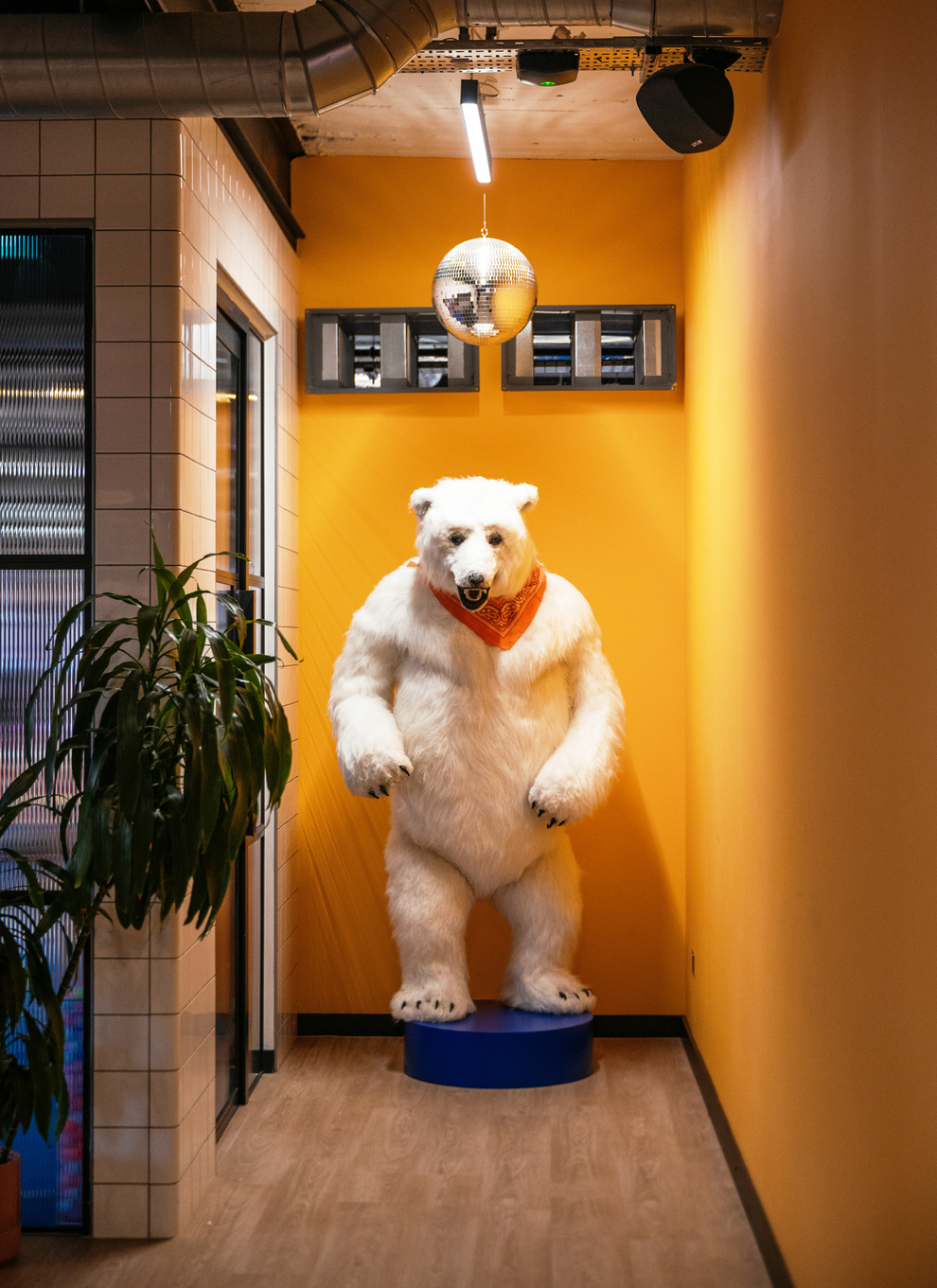 That sense of joy runs through the workplace, from a dancing polar-bear mascot beneath a disco ball to hidden googly eyes snuck onto inanimate objects in unexpected places.